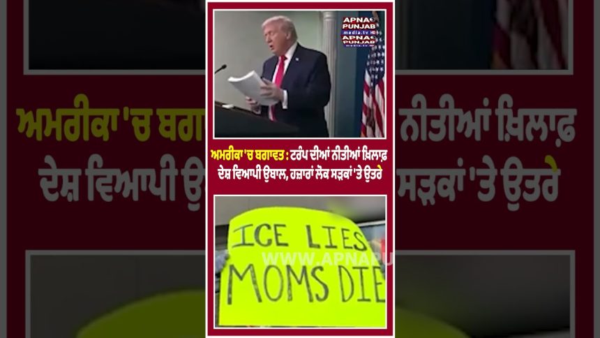 ਟੀਵੀ ਅਮਰੀਕਾ ‘ਚ ਬਗਾਵਤ! ਟਰੰਪ ਦੀਆਂ ਨੀਤੀਆਂ ਖ਼ਿਲਾਫ਼ ਸੜਕਾਂ ‘ਤੇ ਉਤਰੇ ਹਜ਼ਾਰਾਂ ਲੋਕ 🇺🇸 Last updated: January 21, 2026 9:42 am News Online Share SHARE TAGGED:AmericaNewsBreakingNewsGlobalNewsTrumpPoliciesUSProtests Share This Article Facebook Copy Link Print Leave a Comment Leave a Reply Cancel replyYou must be logged in to post a comment. Your Trusted Source for Accurate and Timely Updates!Our commitment to accuracy, impartiality, and delivering breaking news as it happens has earned us the trust of a vast audience. Stay ahead with real-time updates on the latest events, trends. FacebookLikeXFollowInstagramFollowLinkedInFollowMediumFollowQuoraFollow - Advertisement -