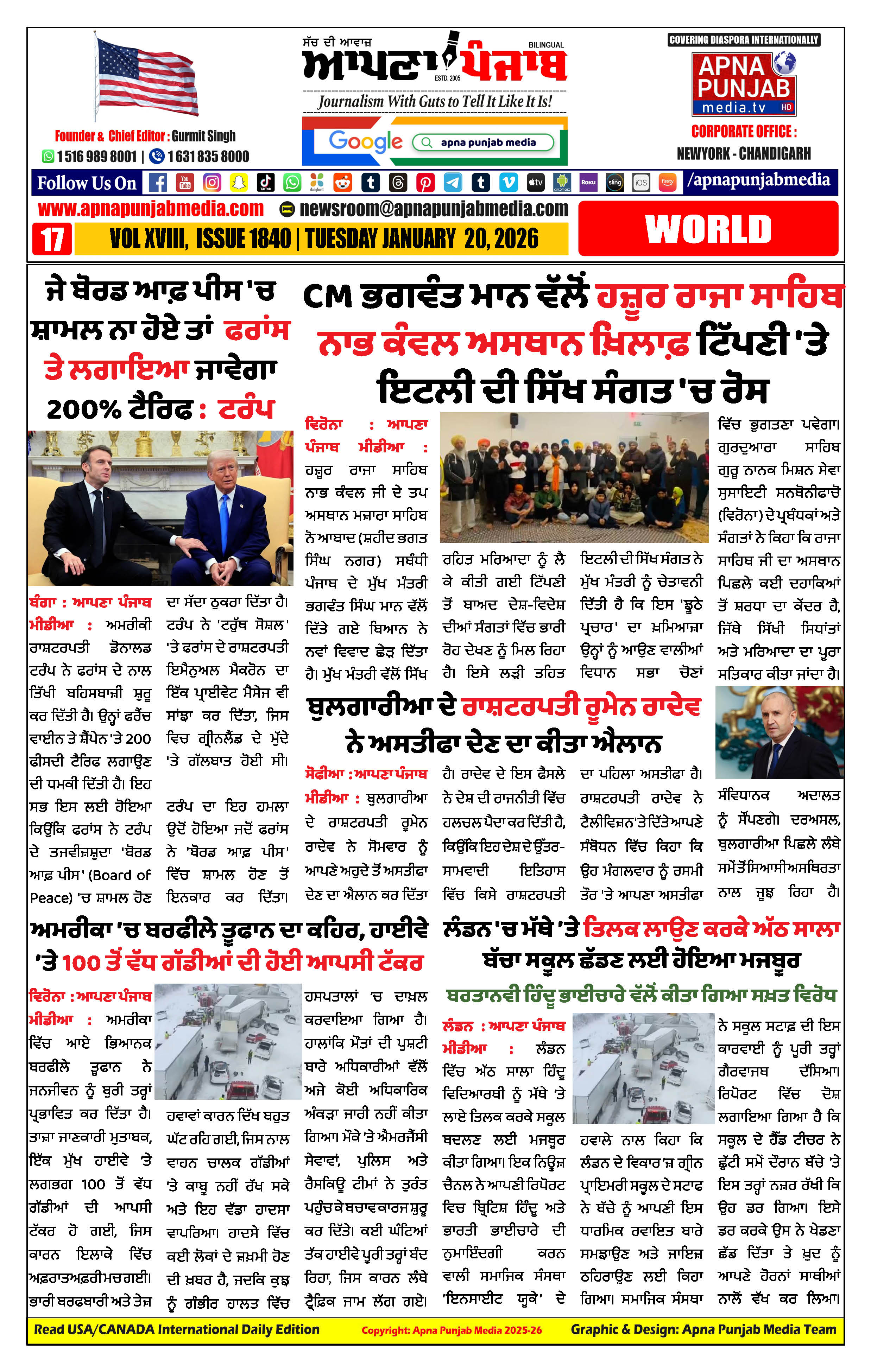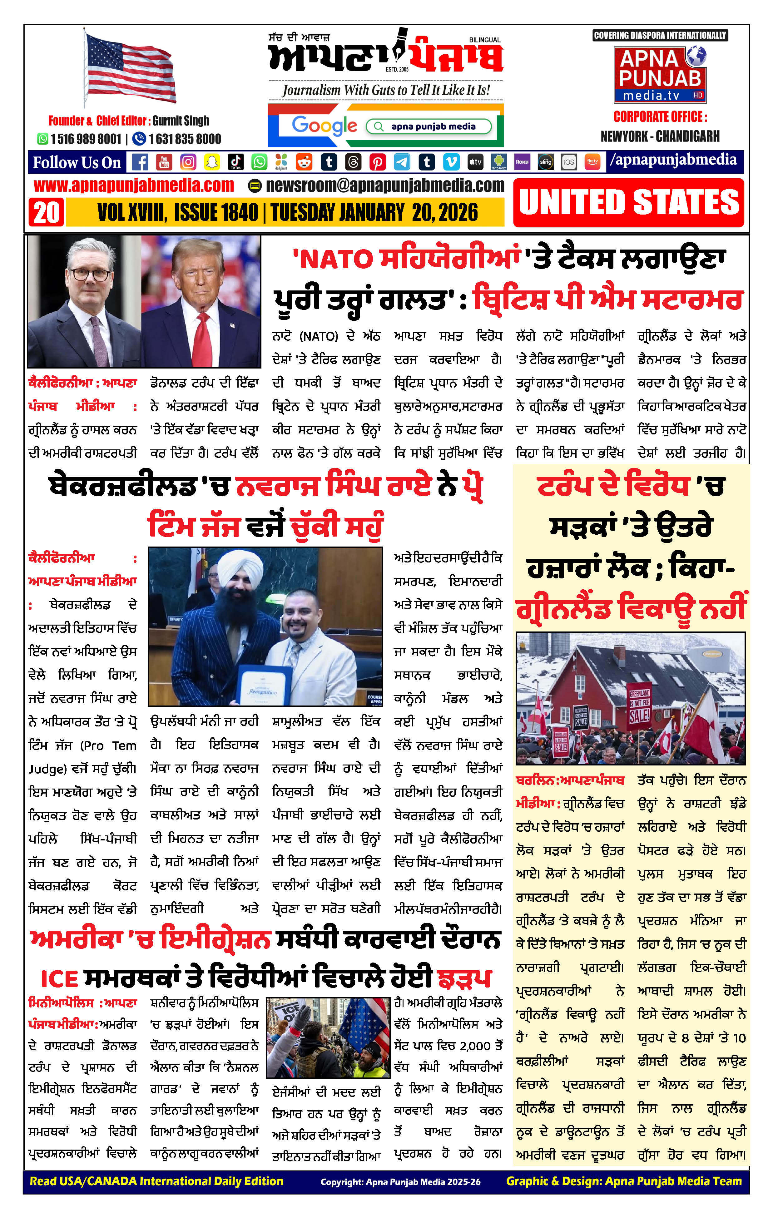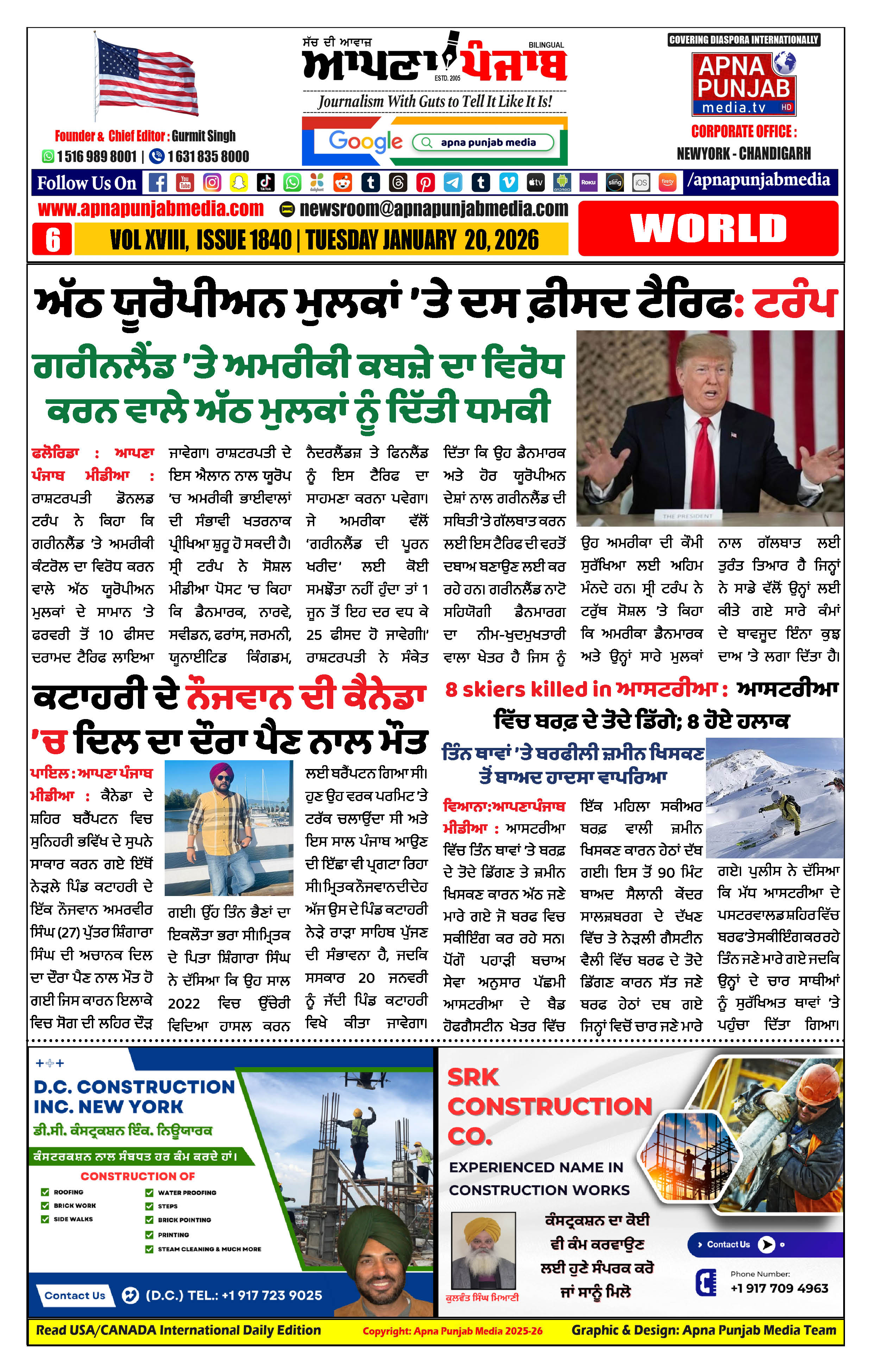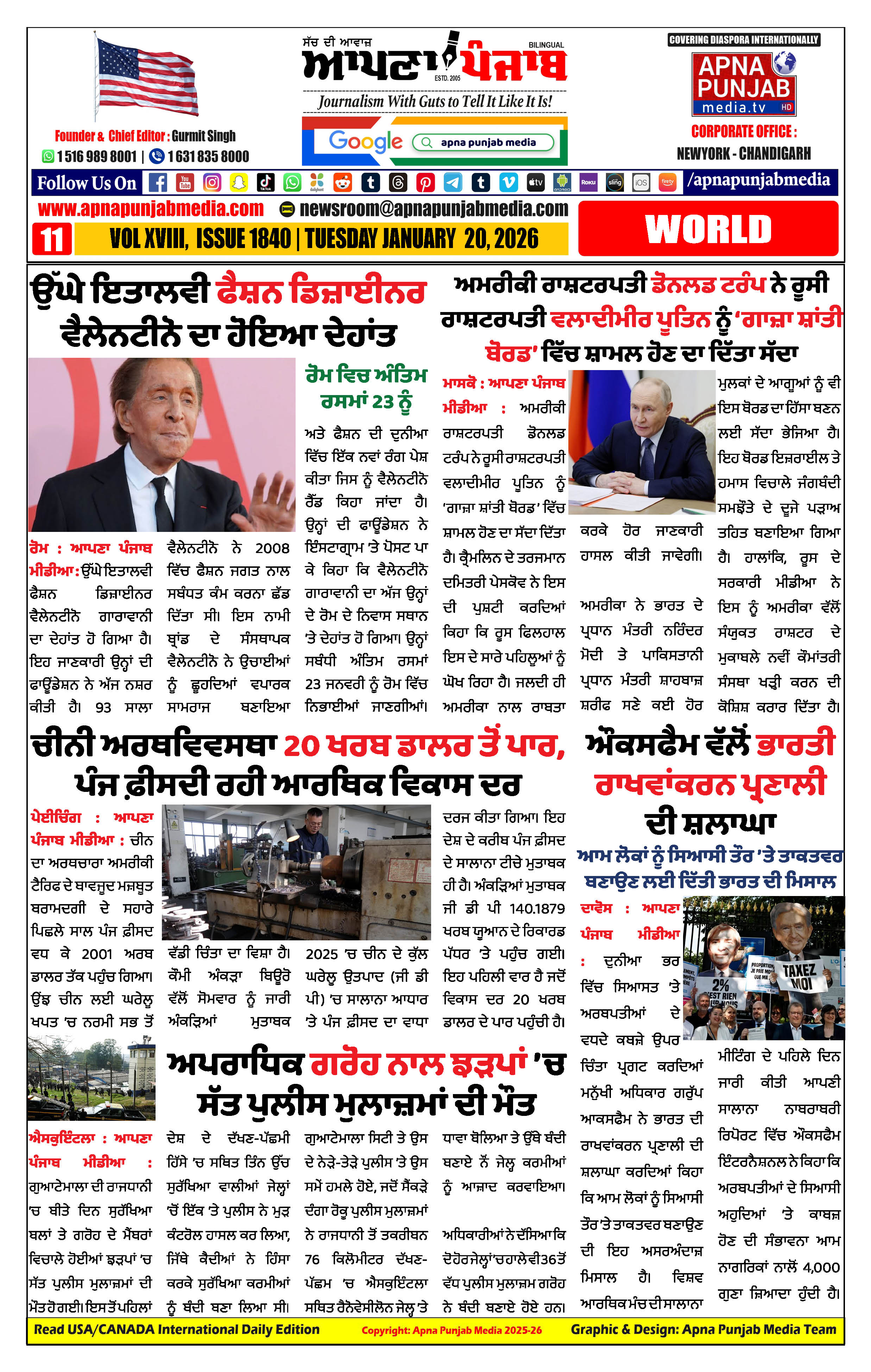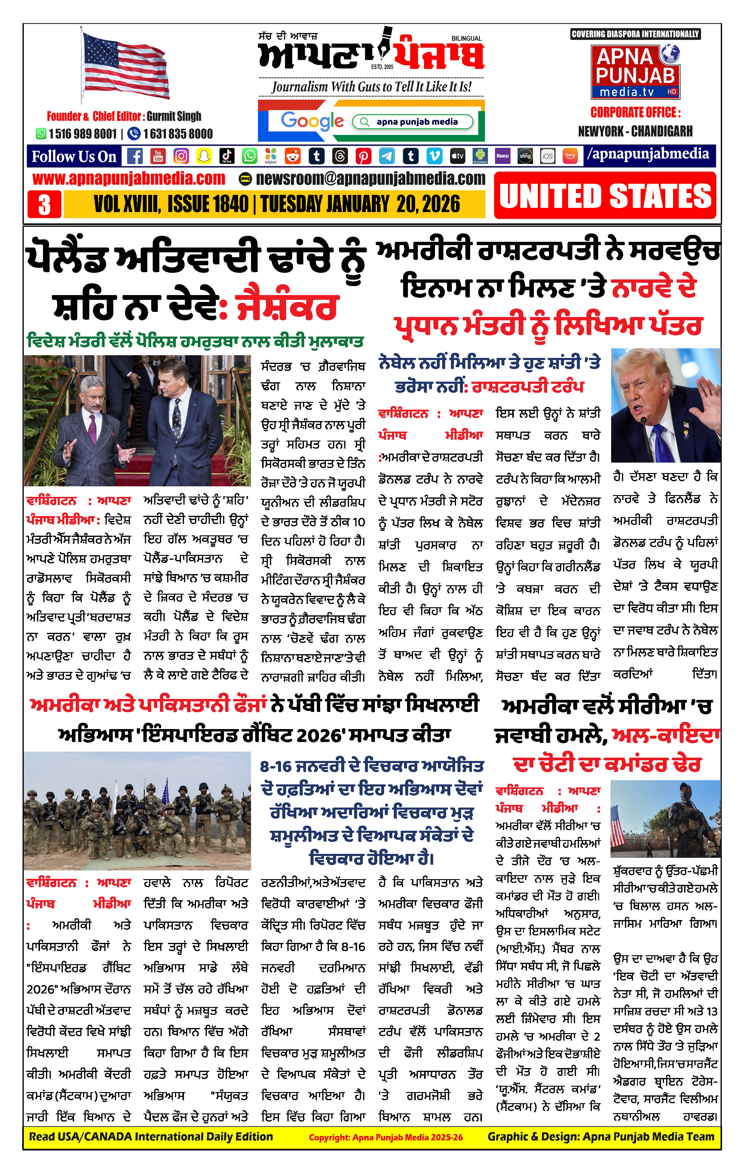JANUARY 20. 2026 | USA/CANADA INTERNATIONAL DAILY EDITION | ISSUE NO- 1840