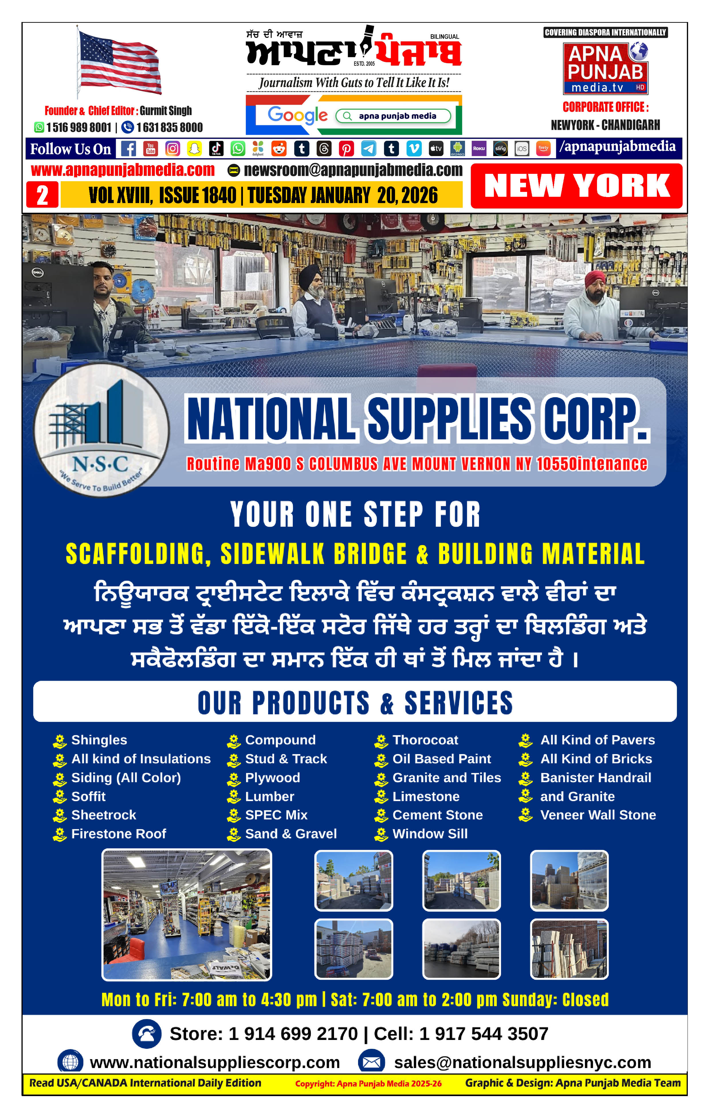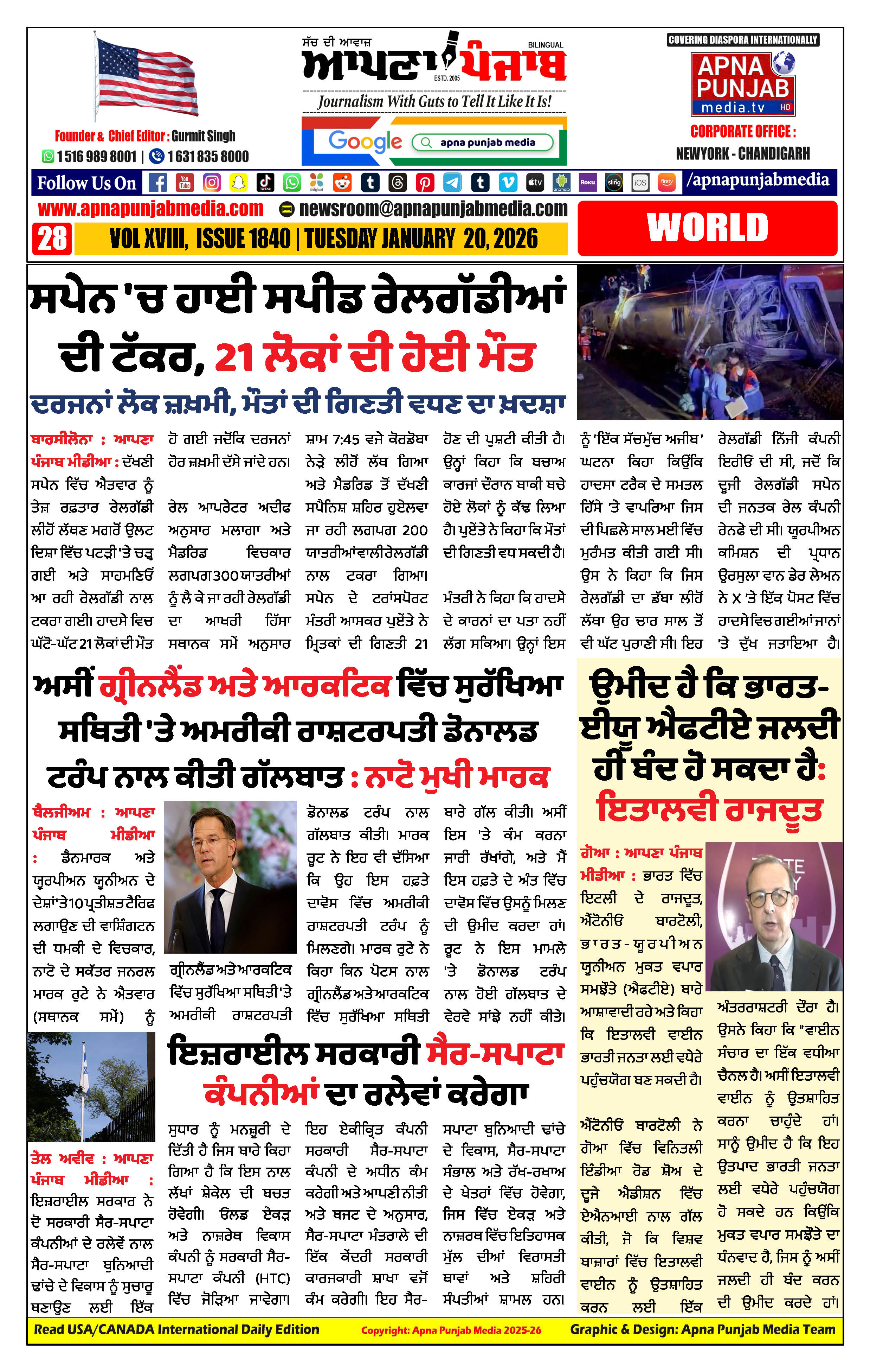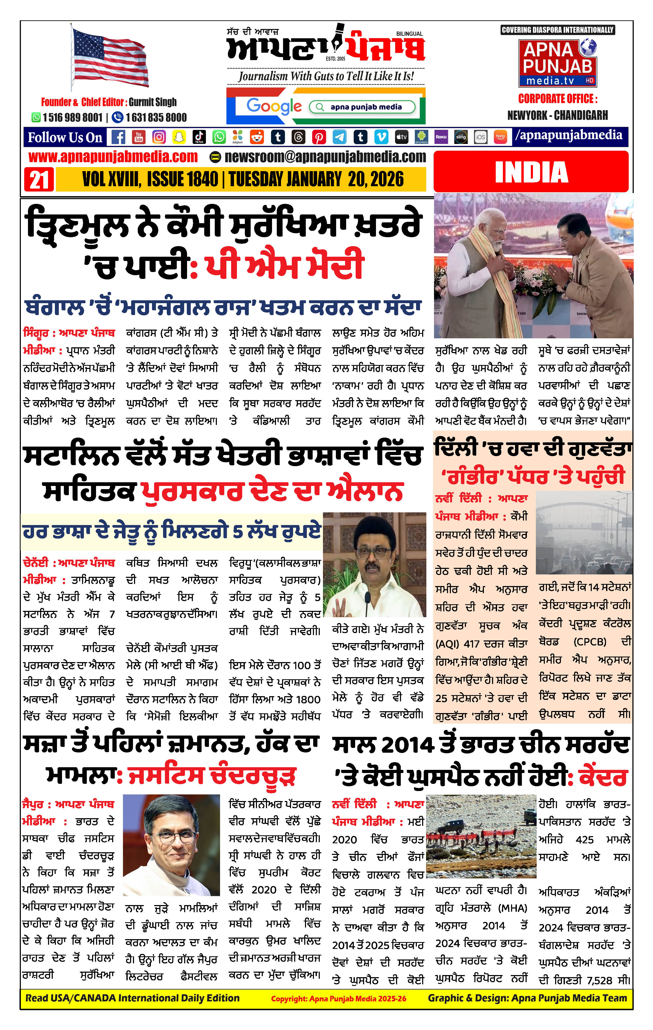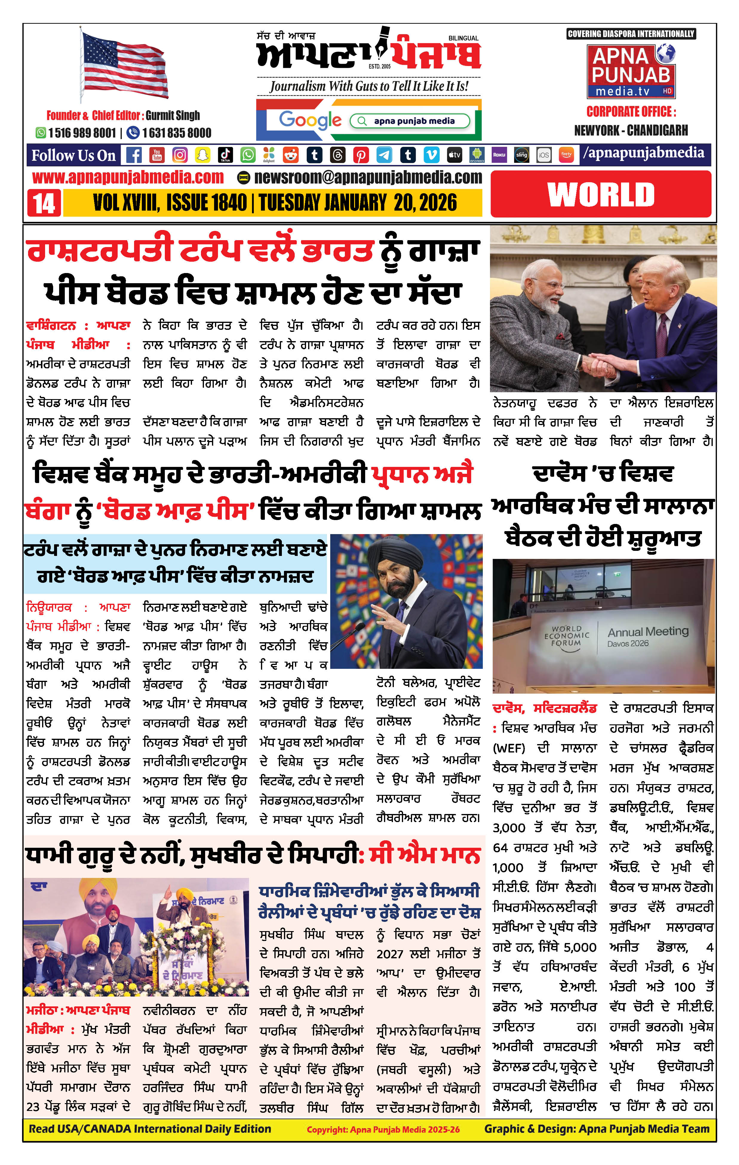 JANUARY 20. 2026 | USA/CANADA INTERNATIONAL DAILY EDITION | ISSUE NO- 1840