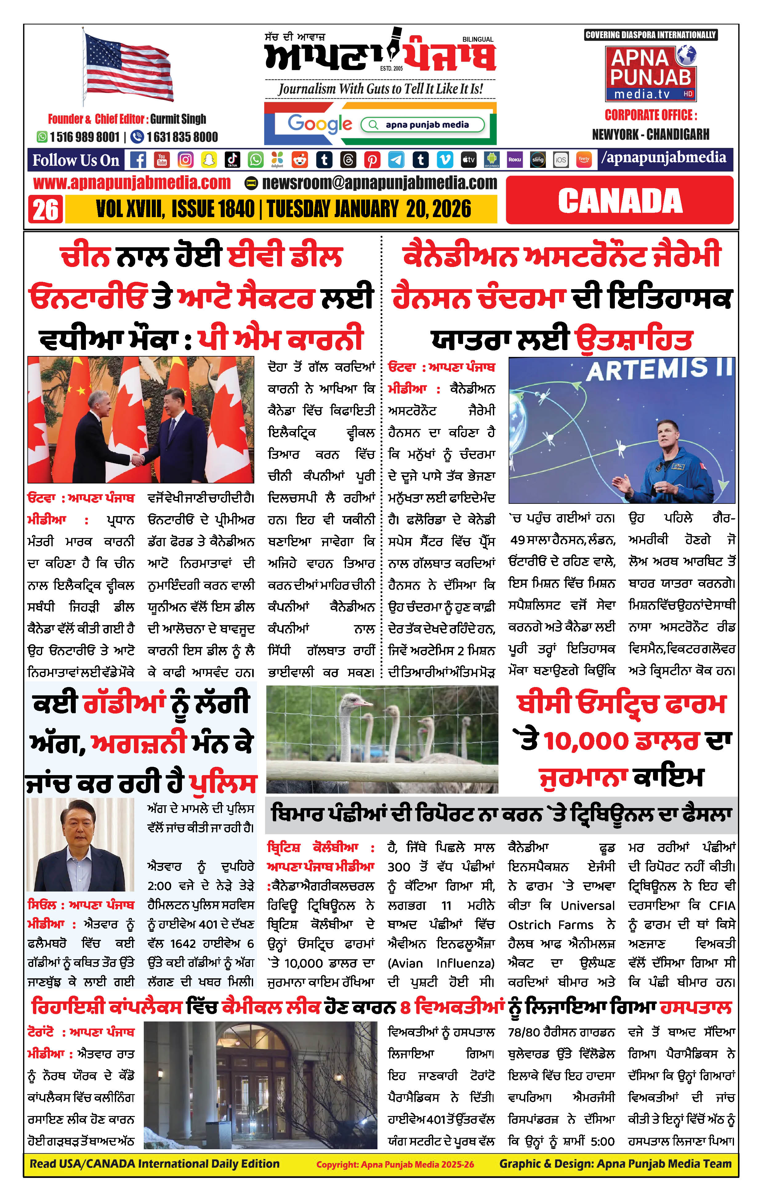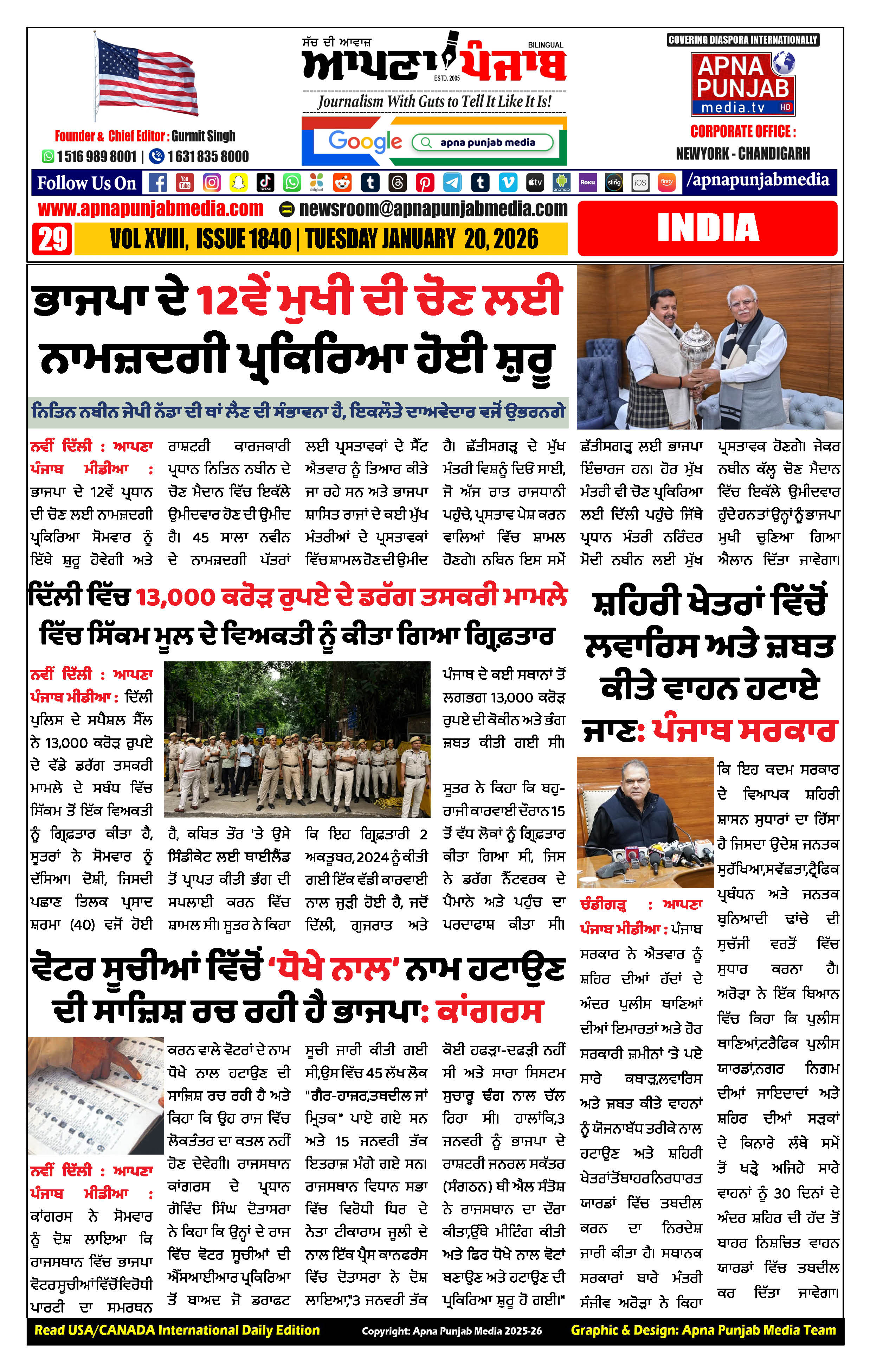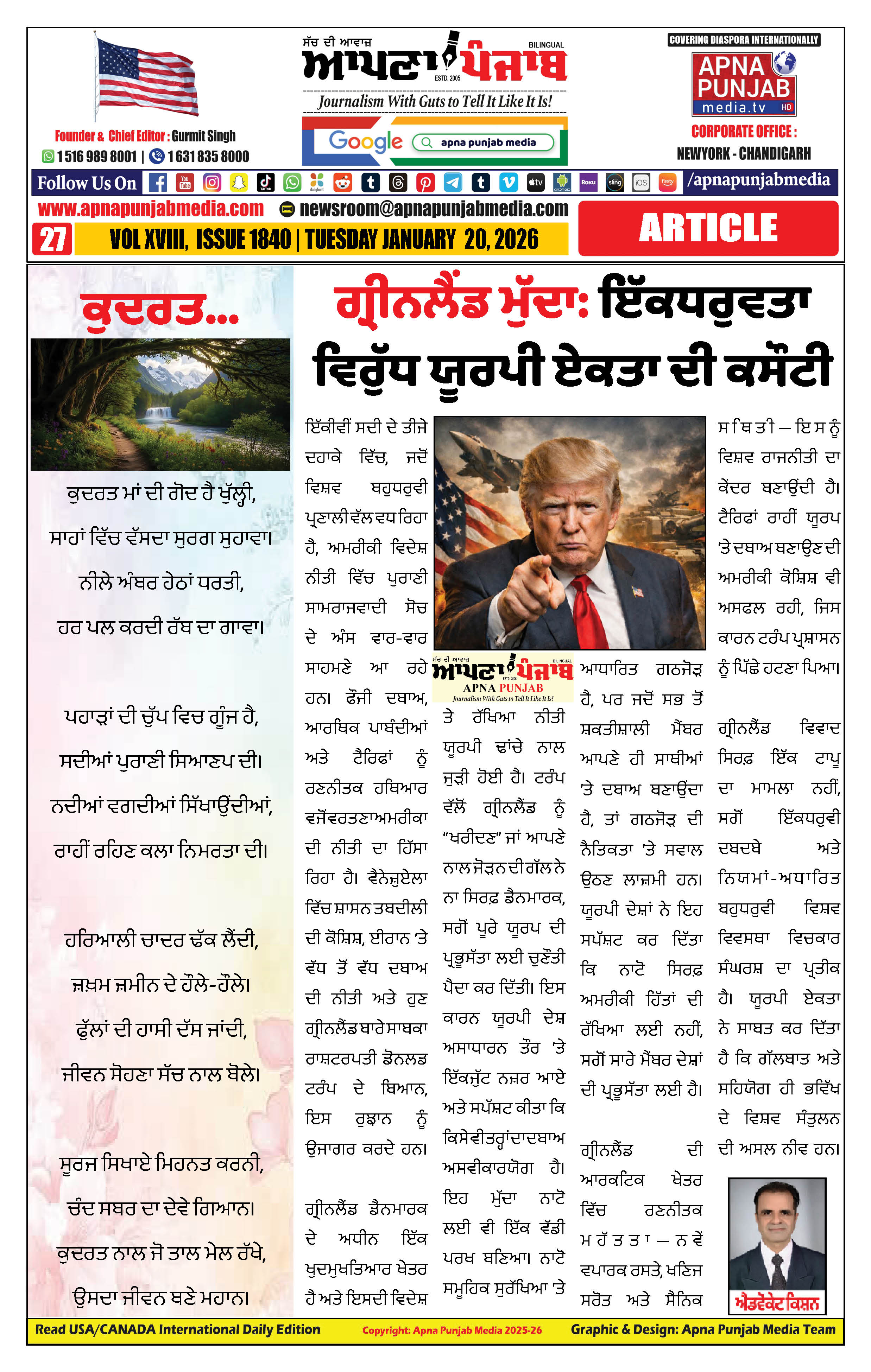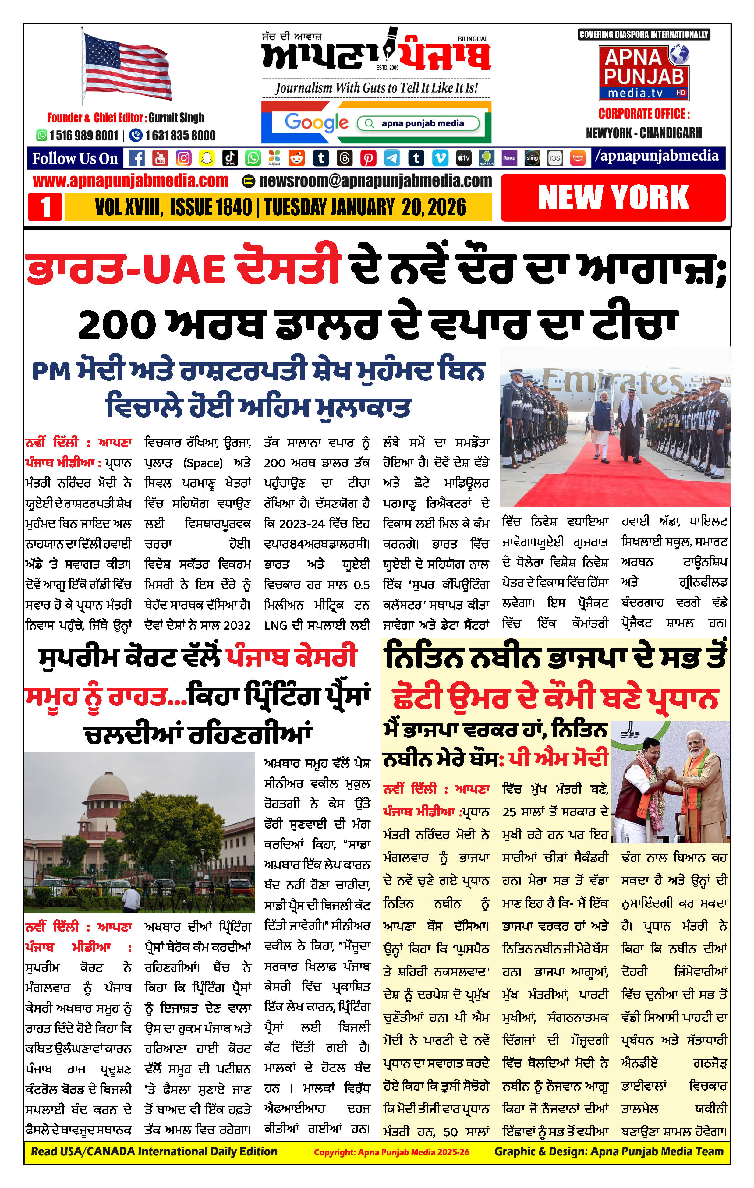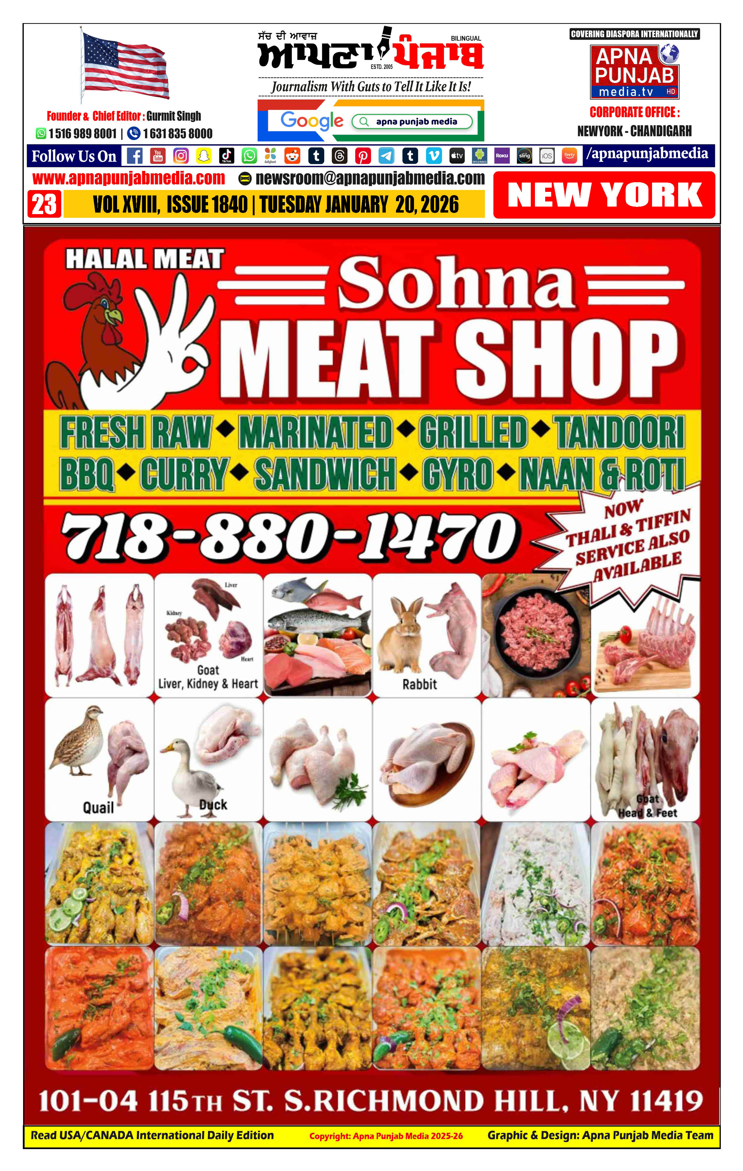 JANUARY 20. 2026 | USA/CANADA INTERNATIONAL DAILY EDITION | ISSUE NO- 1840