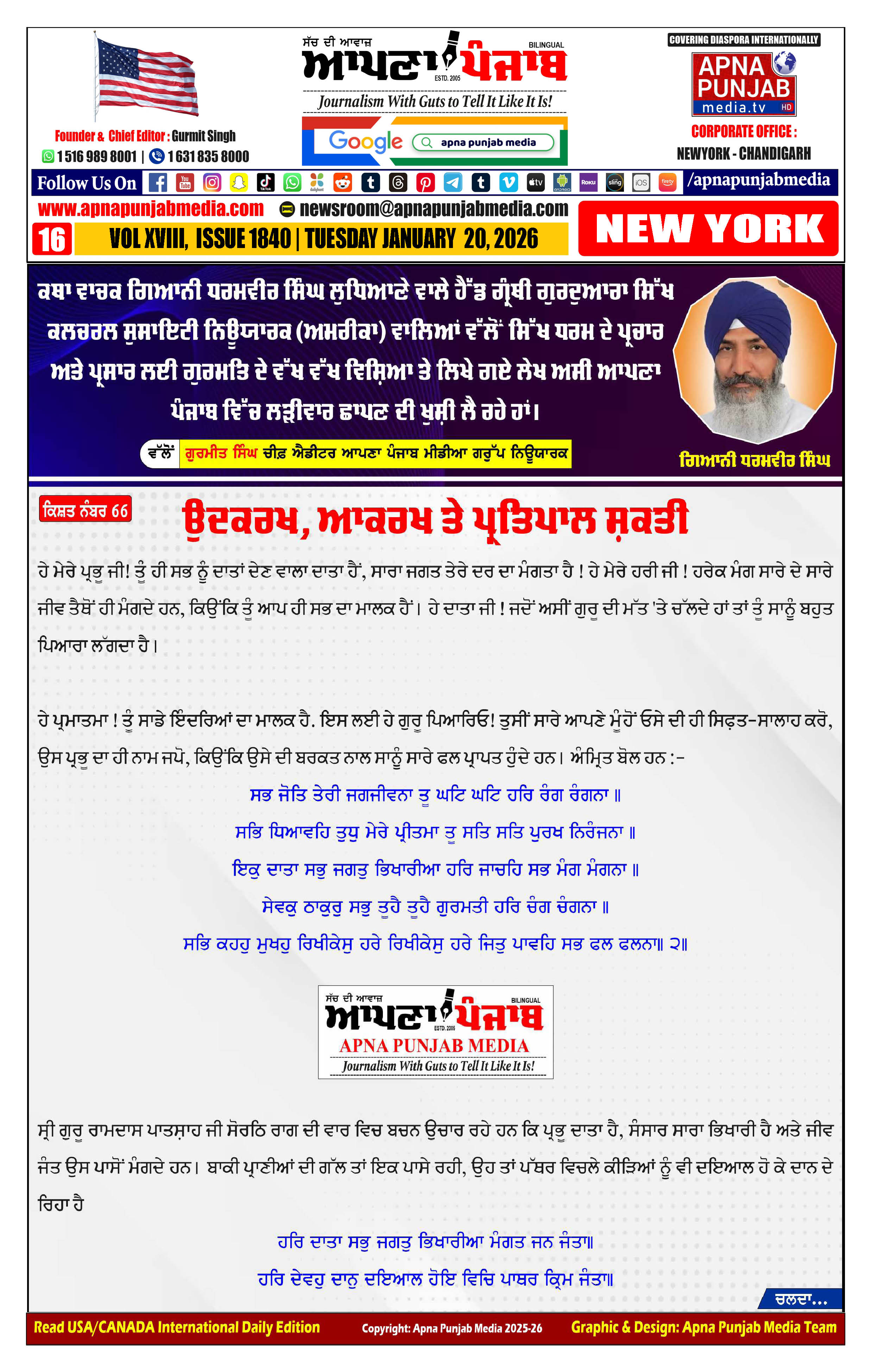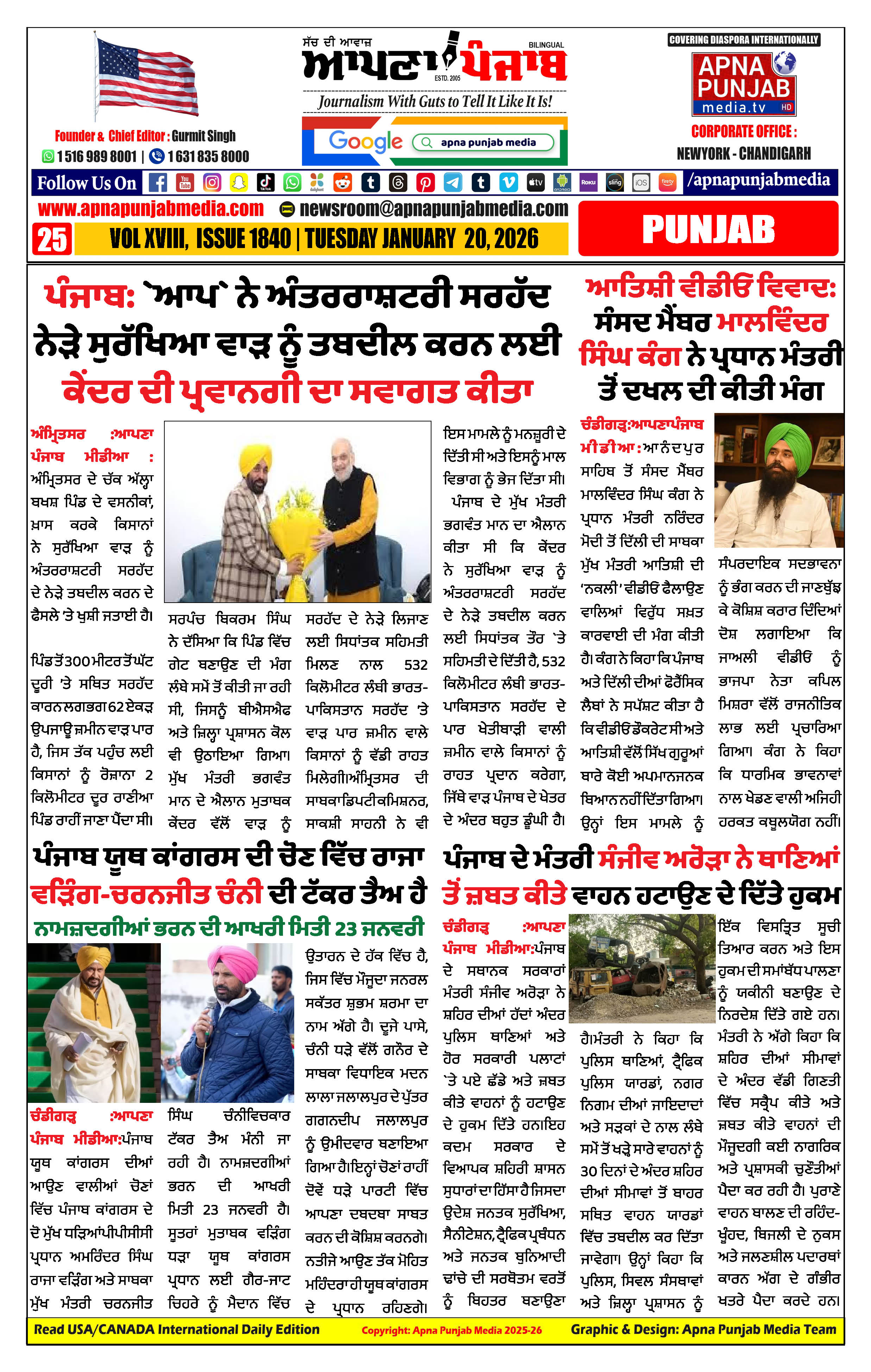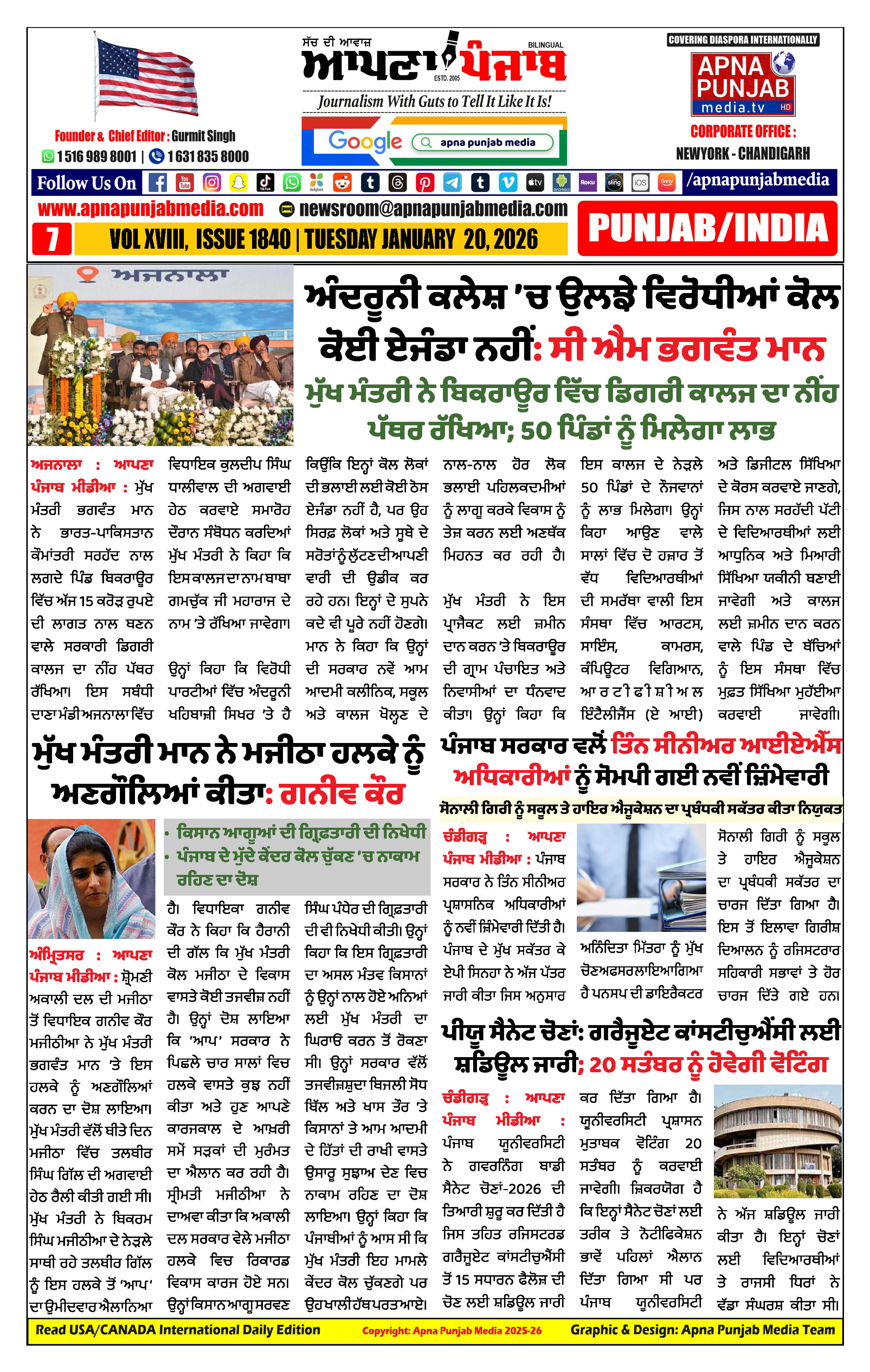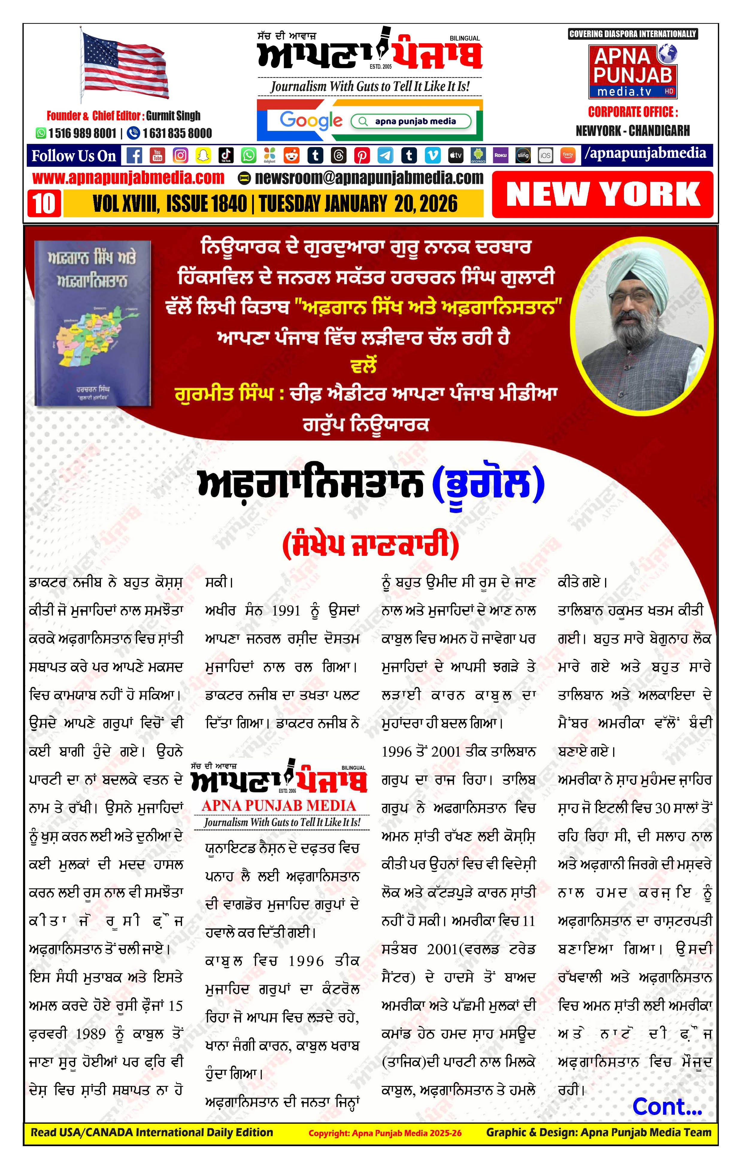 JANUARY 20. 2026 | USA/CANADA INTERNATIONAL DAILY EDITION | ISSUE NO- 1840