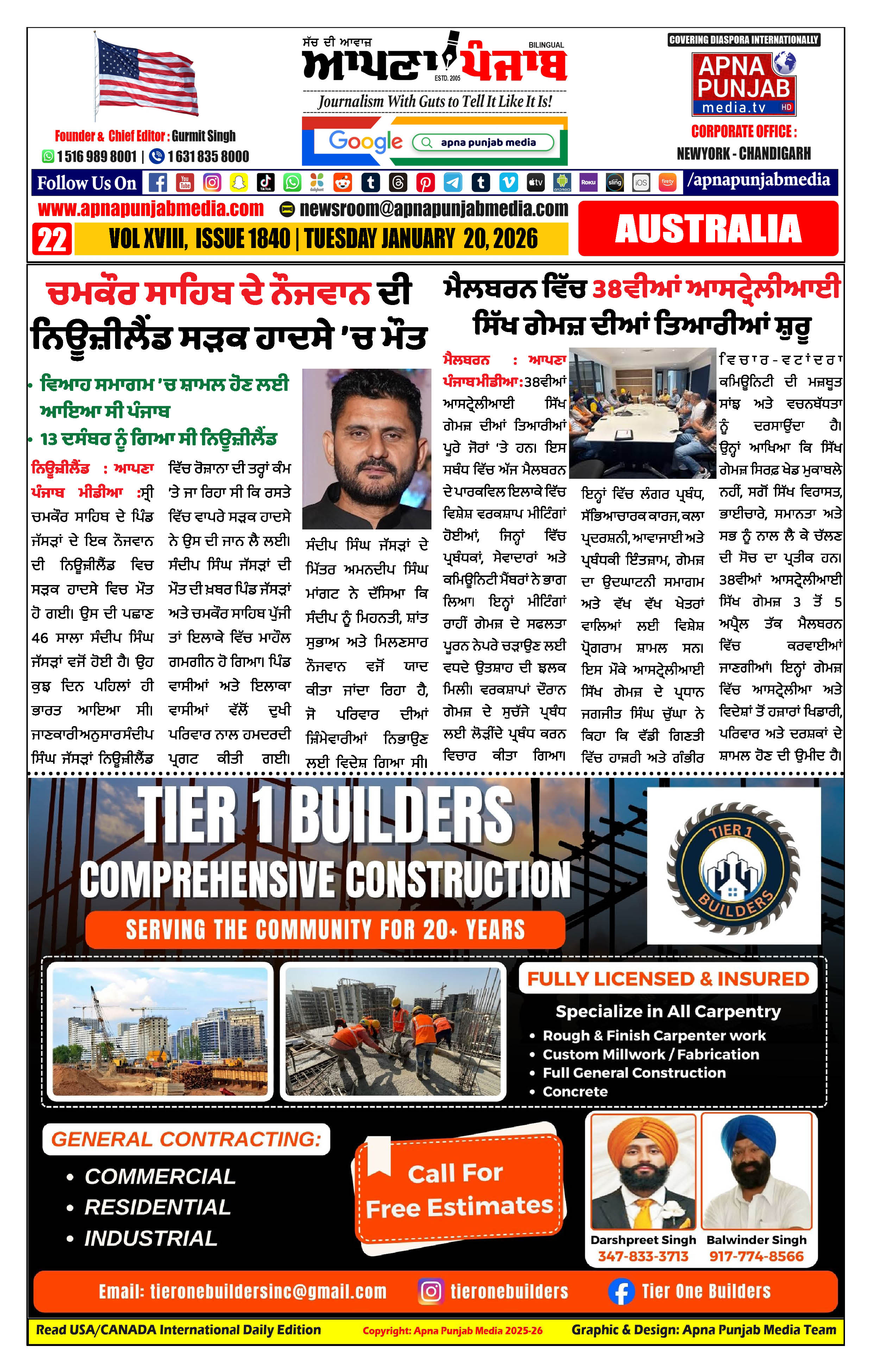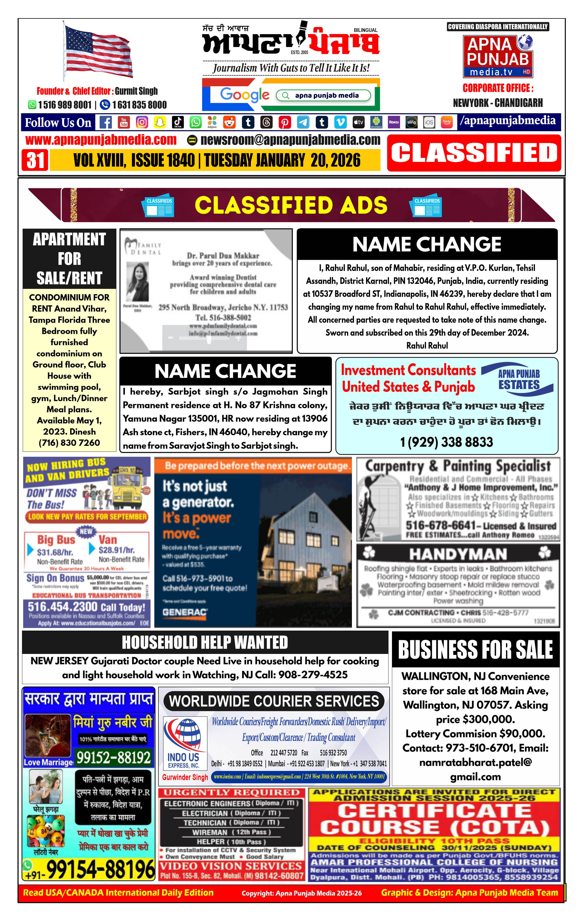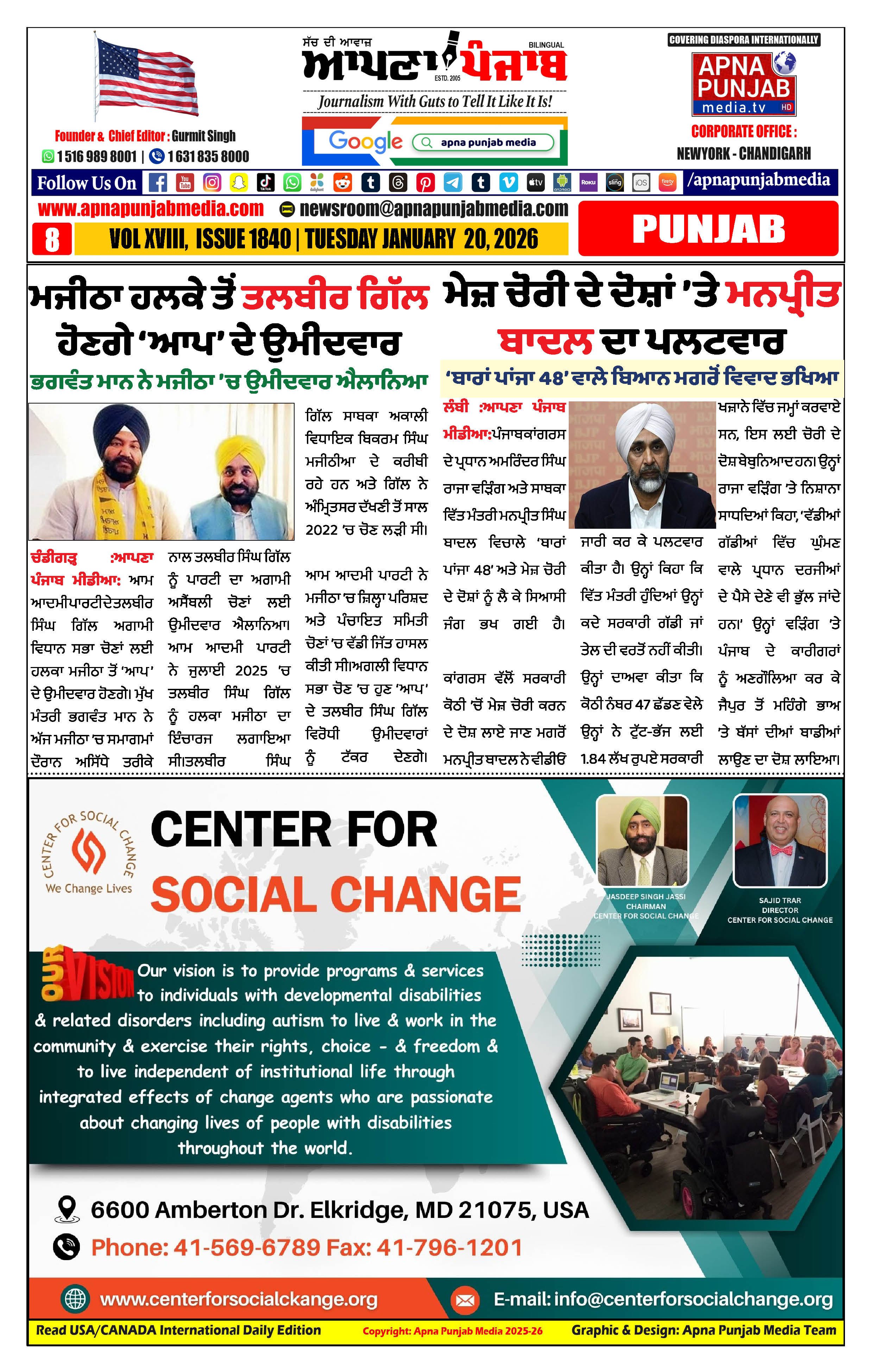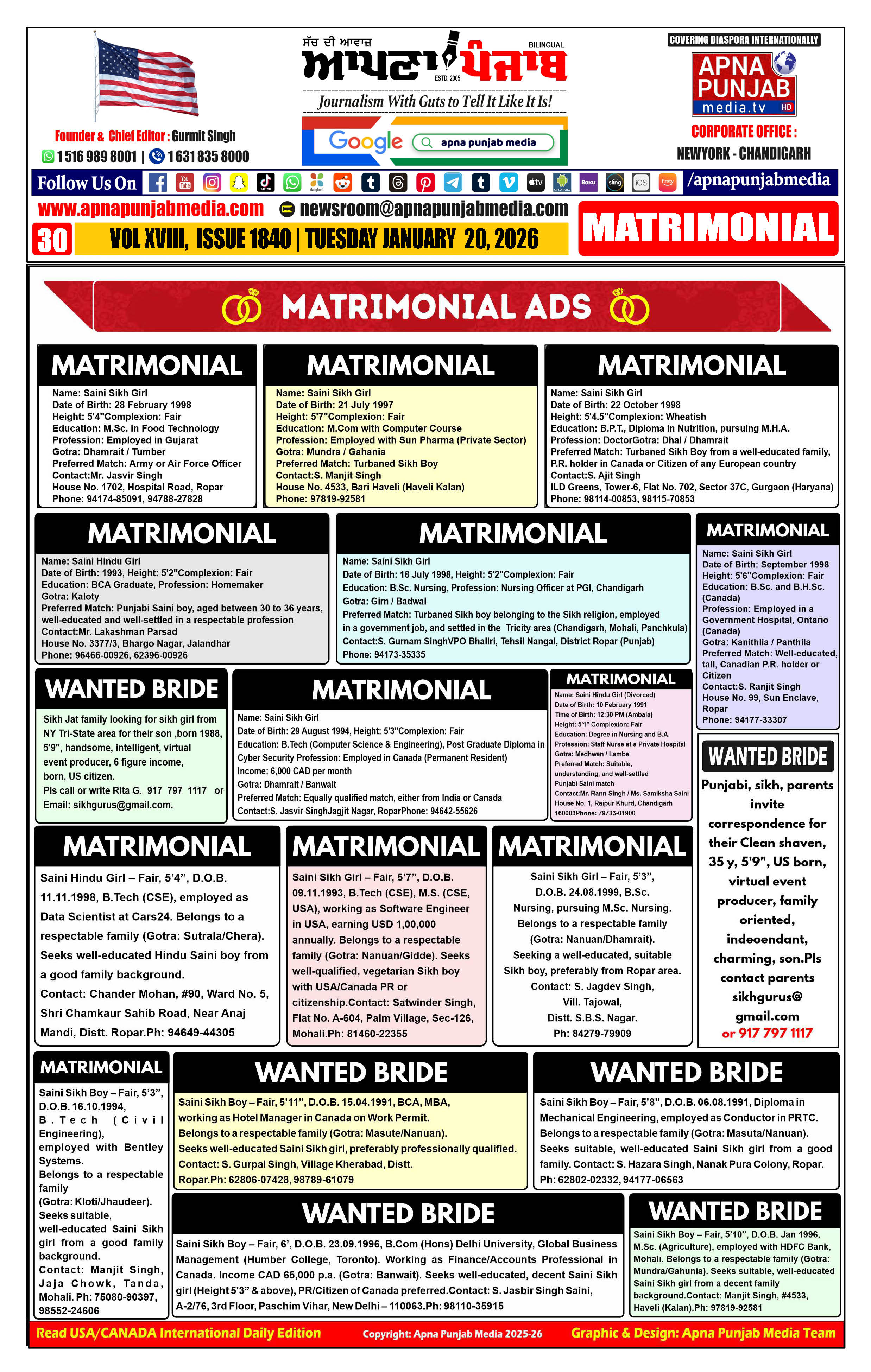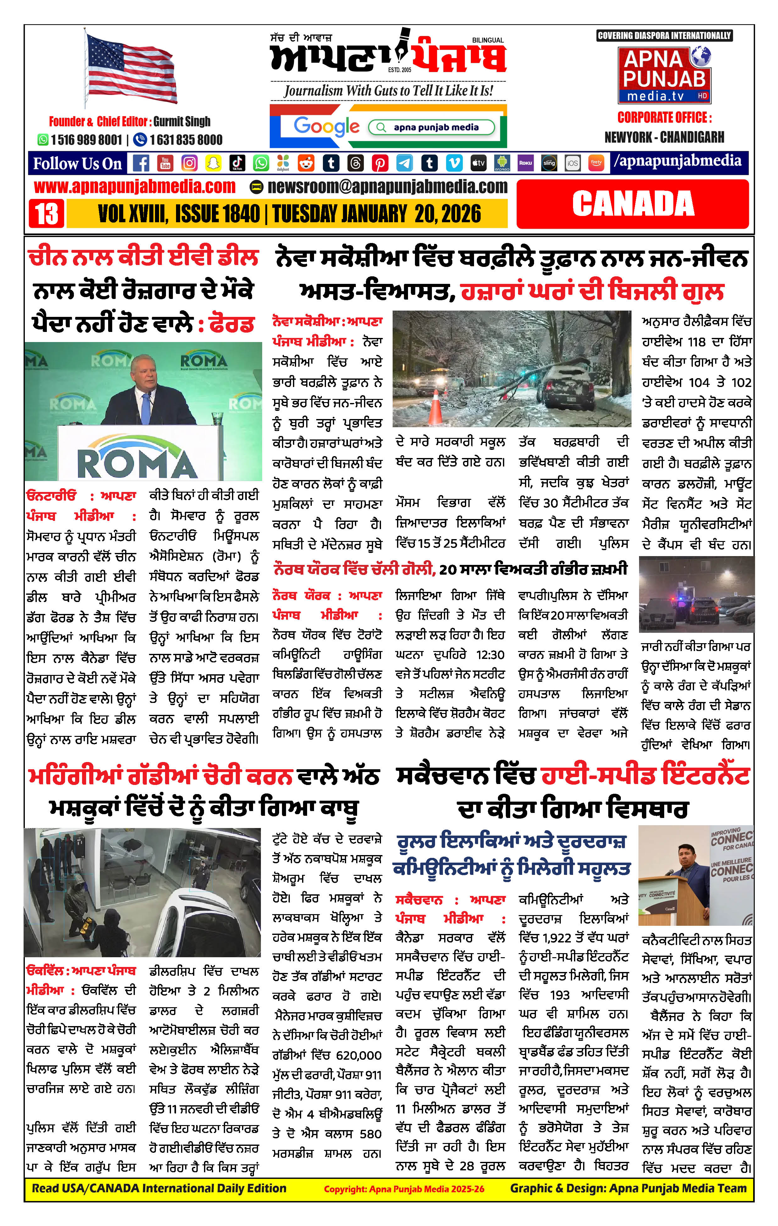 JANUARY 20. 2026 | USA/CANADA INTERNATIONAL DAILY EDITION | ISSUE NO- 1840